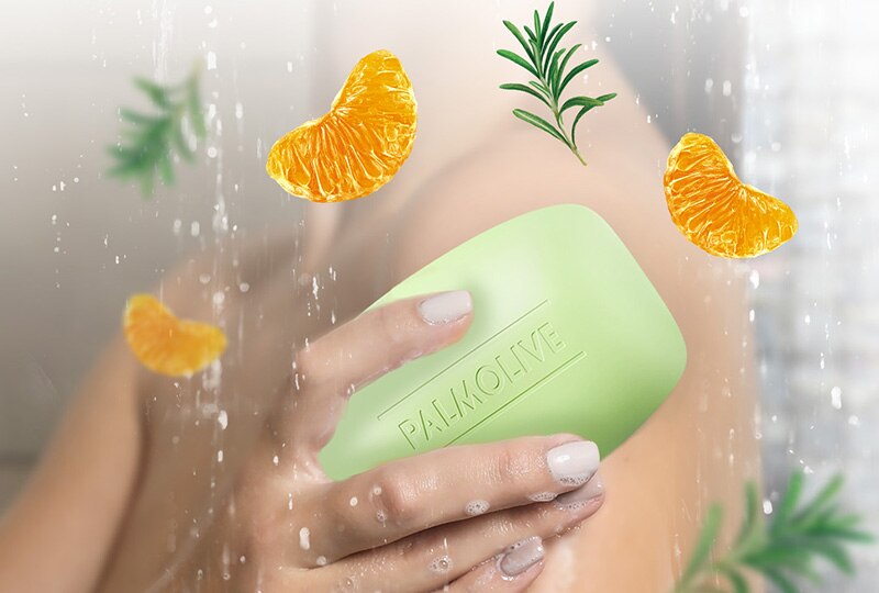Durante tu baño diario, masajea suavemente tu piel con el jabón Palmolive Naturals Mandarina y Romero inspirado en la naturaleza. Enjuaga muy bien y repite, si así lo deseas.